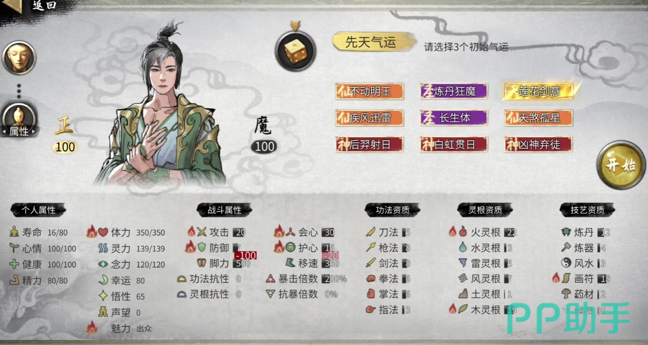 双修也是一种恢复心情的方式。与道侣结合道心,不仅能够小幅提升心情,还可增加修为。虽然双修的心情提升效果有限,但其附带的修为增长使其成为修仙者日常修炼的良好补充。然而,需要注意的是,双修对道侣关系的稳定性有一定要求,建议玩家在确保道侣好感度充足的情况下进行,以避免因关系恶化而带来的负面情绪。如果玩家希望彻底避免心情波动带来的困扰,可以通过调整天赋点来实现。例如,取消灵根属性后,玩家将不会受到任何情绪状态的影响。这种方法适合追求完美结局或希望专注修炼的玩家,因为在这种状态下,玩家既不会受负面情绪的干扰,也不会有走火入魔的风险。然而,取消灵根属性也意味着失去了情绪带来的所有增益,因此需要根据自身玩法风格慎重决定。