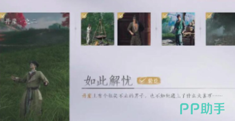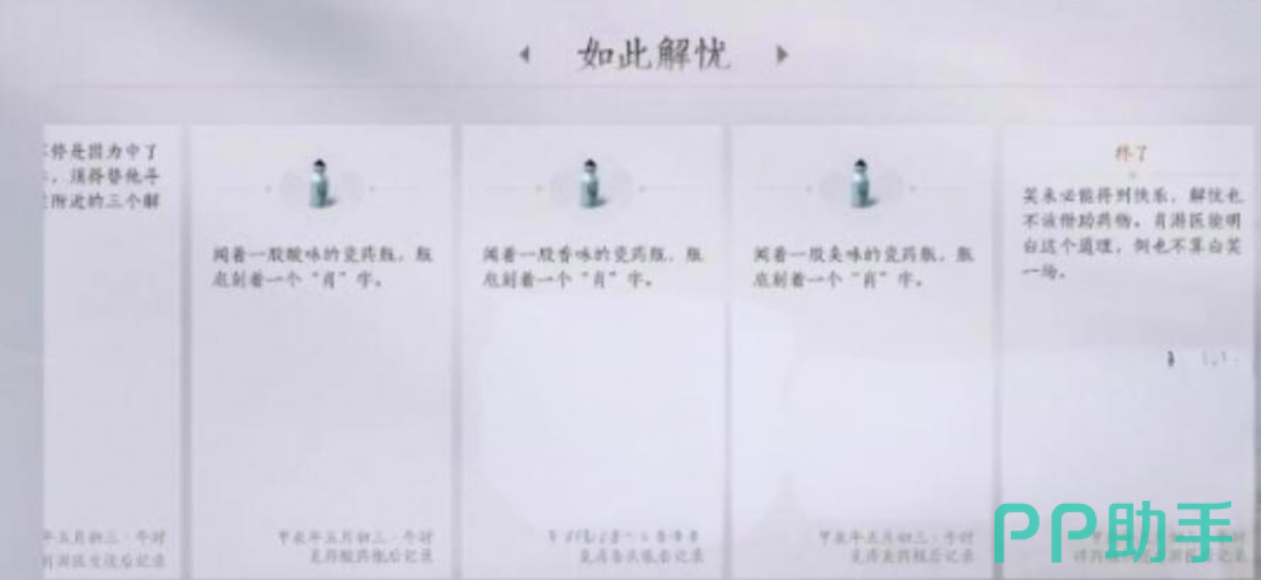 燕云十六声如此解忧攻略就是玩家找到三个药品之后,直接把它交给npc,然后再完成对话,此时就代表玩家已经完成了这个支线任务。当玩家完成了该任务之后,将会获得经验值,周元通,清河探索度等等奖励。