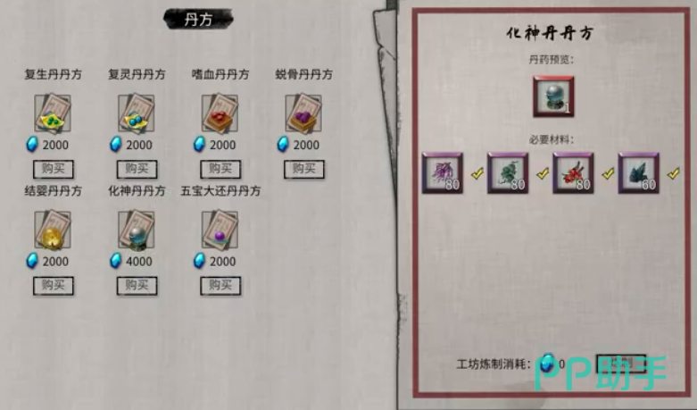 首先玩家需要先前往永吉城的主城区进入工坊,花费4000灵石就可以拿到化神丹的单方。目前获得灵石的主要方法还是在于刷副本以及跑图,只有积累到一定程度才能够快速拿到自己想要的单方,并且为后续的丹药炼制做好相关的准备,而在玩家成功拿到单方后是需要按照单方进行材料收集的。