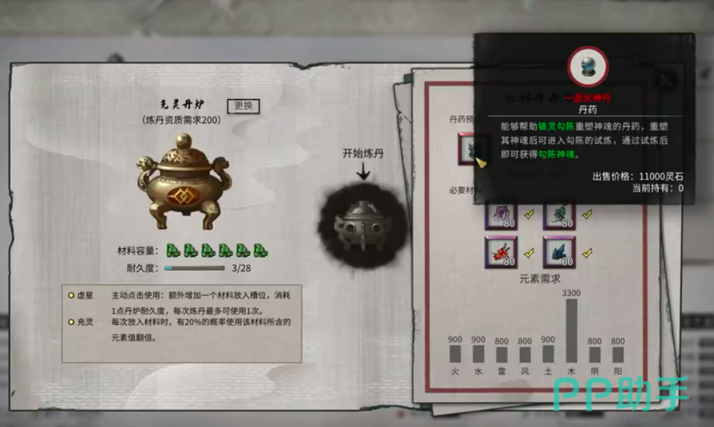 接下来将这些找齐的材料快速放置在炼丹炉当中,建议玩家们可以选择冲灵丹炉这种高品质的单独注意做好杂志和纯度的控制,并且所获得的材料质量越好,那么获得一品化神丹的概率也就越高,这种高品质的丹药能够让玩家的境界突破概率提升60%。而是除了做好杂志和纯度的控制外,玩家可以前往各个城市中对单模进行击杀,这样就可以提高自身的炼丹能力,也可以让炼丹效果大幅增加。