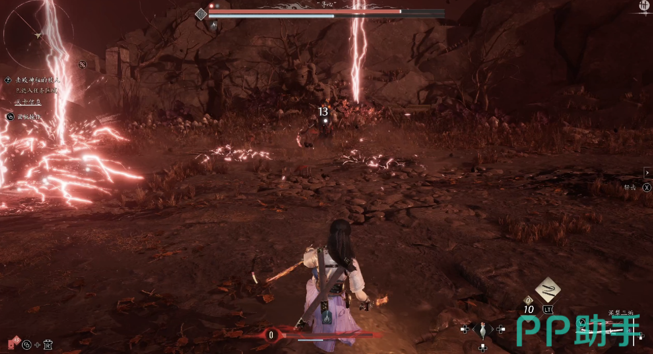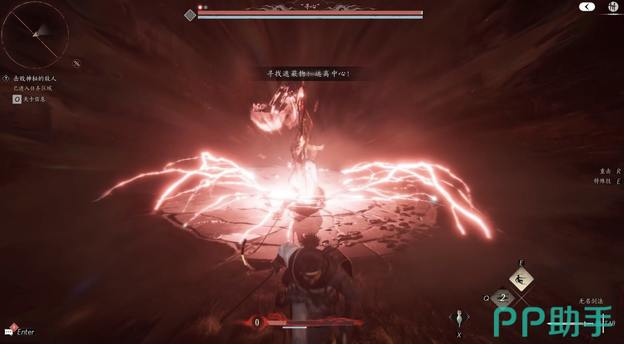 接着进入第二阶段,寻心开始放大招了。这天雷技能,范围大还持续伤害,看着就吓人。但别怕,应对方法和第一阶段差不多,还是靠精准闪避或者格挡,眼睛可得瞪大了,时刻留意它啥时候放。