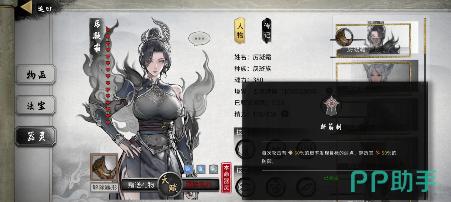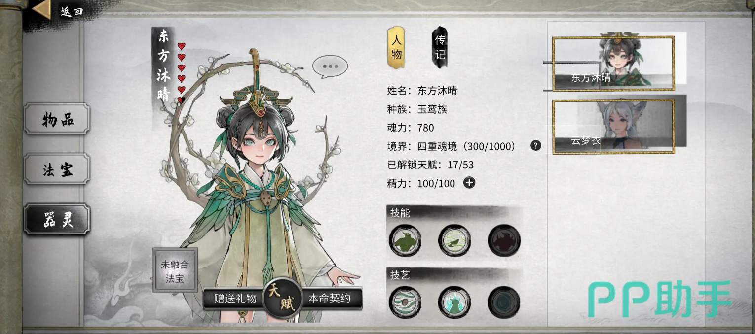最后一些常见的器灵的id分享:①神级器灵中,1001代表云梦衣,1002代表巷崖,1003代表酒尘,1004代表东方沐晴,1005代表厉凝霜。在中级器灵中,2001代表蕴灵,2002代表惑法,2003代表银锋。在下级器灵中,2001代表蕴灵,2003代表银锋,2004代表玄蹄,2005代表霸角。