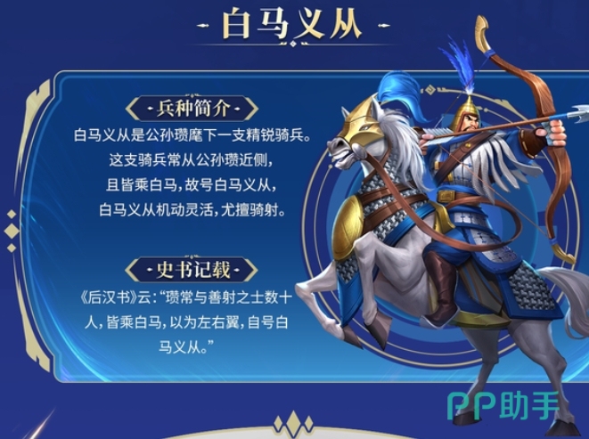 白马从义:这是公孙瓒麾下的一支精锐骑兵部队,这支骑兵常跟随在公孙瓒身边,且皆乘白马,因此得名白马从义,白马从义机动灵活,尤擅骑射,是公孙瓒手中的一张王牌。
