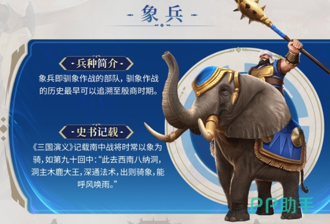 象兵:象兵即驯象作战的部队,其历史可以追溯至殷商时期,在三国时期,象兵也是一种特殊的作战力量。虽然关于象兵的具体记载不多,但我们可以想象,在当时的战争环境中,一支驯象作战的部队无疑会给敌人带来巨大的压力和实际威胁。