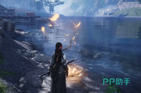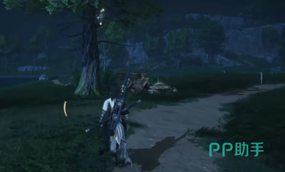 完成后需要前往第三个区域竹林旧居,来到该区域后还是一样的从传送点出发,出发以后往背后走沿着土路一路往前,在往前走的过程中土路两边可以看到多个箱子和营地,之后回经过一座石桥,在过石桥后往前看可以看到一棵树,这树上拥有一个蚂蜂窝,需要烧掉蜂窝,这分蜂窝也是探索内容,随后烧掉后继续往前往河边方向走,可以在这里看到一个石楼笼和一座码头,码头上有很多木箱子,打掉后可以获得奖励箱子。