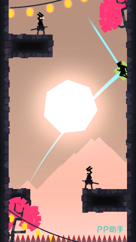 《忍者东武》是一款控制忍者不断向上跳跃的休闲游戏,游戏中的场景是2d竖屏的,对于向上的跳跃做了很大的场景延伸,游戏中的玩法也比较简单,只需要点击和拖动就能控制忍者的动作,在游戏中的每个关卡里忍者会遇到的挑战都不同,有的可能是满布墙壁的钉子,有的可能是敌人。