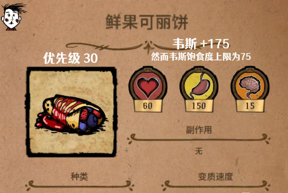 鲜果可丽饼:所需要准备的就是任意的水果,还有适当性的蜂蜜以及黄油。在使用完毕之后就可以增加150点饱食度,还有60点生命值。