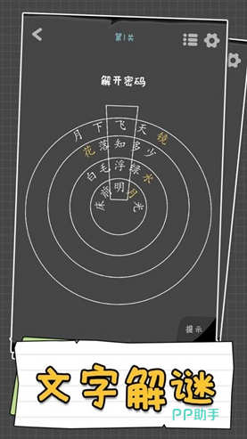 在这款游戏中,每一道关卡都蕴含着独特的谜题,等待着玩家去探索解锁。游戏设计得非常直观,只需轻触屏幕,通过手指的简单点击,就能轻松掌握谜题的流程,并迅速找到答案,享受成功的喜悦。游戏以闯关形式展开,为玩家提供了大量的挑战关卡。随着关卡的前进,谜题的难度逐渐增加,挑战也随之加剧。每个关卡都有其独特的谜题设计,需要玩家细心观察和认真思考,才能解开字谜的奥秘。