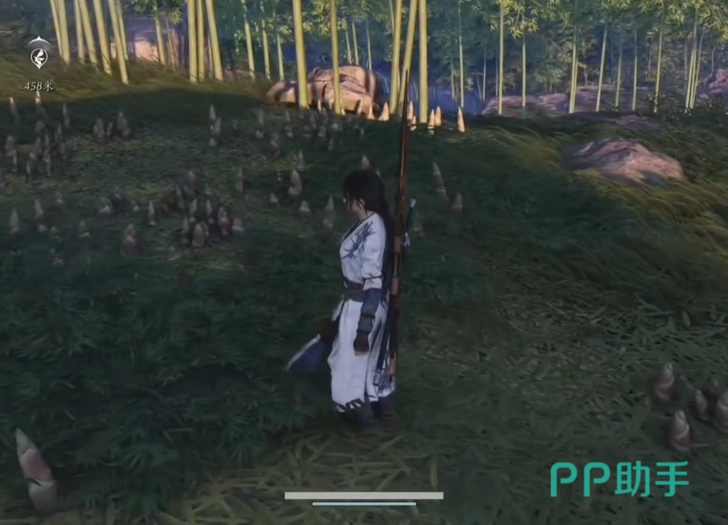 接着大叔左侧是一个悬崖,玩家们往悬崖走去,这时候来到悬崖附近会看到一直洁白的巨鸟,玩家们需要将其击杀,使用弓箭武器是最简单的,这个鸟几乎不动射杀是很容易的。
