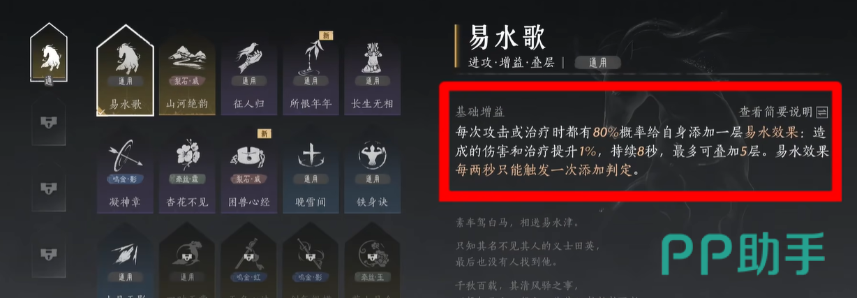 目前这就是小编提供的燕云十六声易水歌心法怎么获取的全部信息,这个心法只需要到不羡仙寻找商人购买所有残卷就可以了,需要消耗比较多的长鸣玉,解锁以后可以提高玩家们的综合战斗能力哦!
