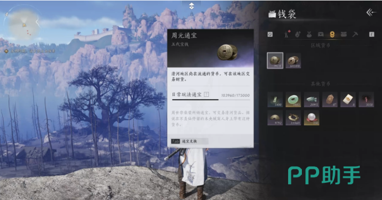 该作品中的货币确实非常多,可能大家分辨还需要花一段时间,举例来看周元通宝,就是前期比较重要的货币,用于技能升级装备强化,清河购物等,在清河任务和探索里面能获得,至于其他好多种,就需要慢慢去了解了。