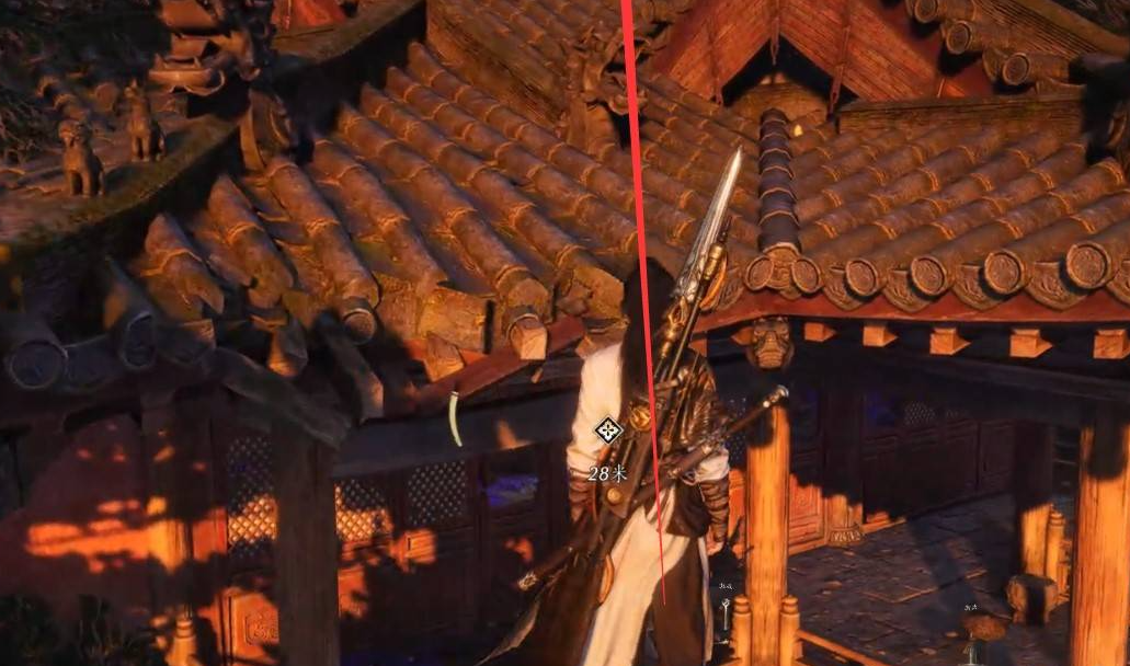 出去后会发现室外敌人众多,如果直接硬闯可能会被敌人给包围,为此只能和伊刀兵分两路,他去吸引大量敌人,而我们趁机会进入到庙中解救人质,伊刀引开敌人后,我们到侧边房子处,由于门是锁着的,所以需要跳上房顶从屋顶的洞中进入,这时会发现寒姨并不在里面,被绑架的只有红线和广胡子,这里将他们两个进行救援,但在这个过程中被舞马人发现;