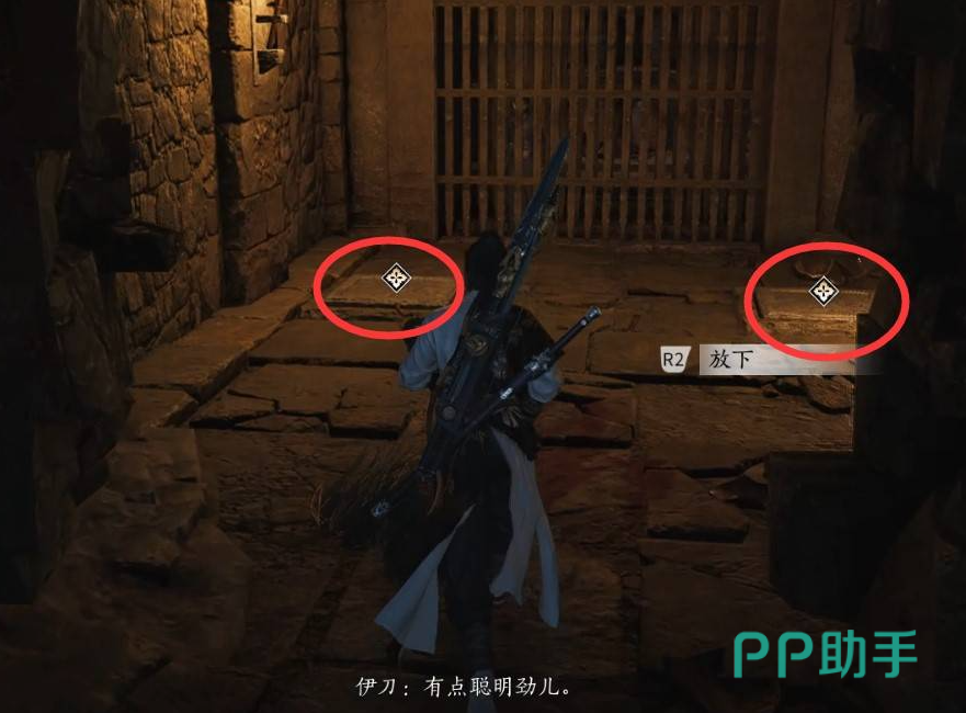 跟踪黑衣人的时候先蹲下然后尽量靠边上走,中间黑衣人会回头看,千万不要动这里还会弹出不做声和直接打两个选项,选不做声就可以一路悄悄跟踪,一路跟踪会进入一个酒窖,当准备深入的时候会有一道机关门降落将我们和伊刀分离,我们如果想要让伊刀出来,需要去找到一尊石像来,这里向前方探索,从右侧道路过去的时候需要注意两边都会喷出火焰,只有走上坡到上层,拿到佛像机关才会关闭,拿着佛像回到伊刀被困处,用佛像压住一个石板,自己踩着另外一个就能救出伊刀。