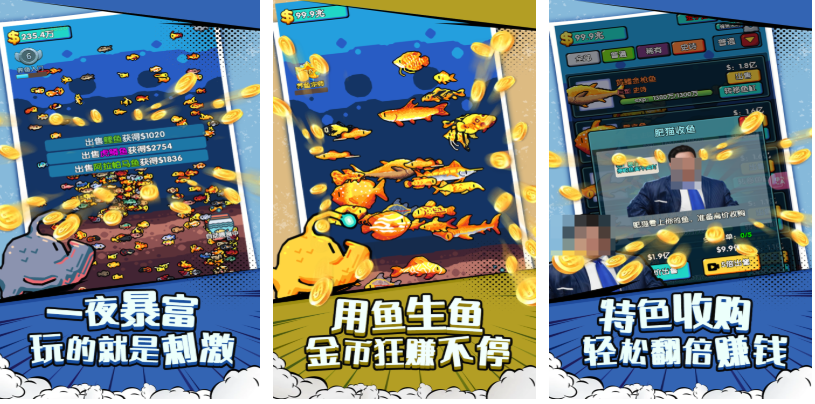 快来养鱼是款有着云养鱼主题的海洋生物养成类作品,你可以在自己的浴缸中投入各种像素小鱼让其自由成长,卡通可爱的像素风格与极高的互动性都是这款养鱼游戏的亮点,用鱼生鱼的方式丰富自己的收藏也非常休闲好玩,将成熟的大鱼售卖出去还可以获得超多通用货币以及形形色色的道具哦。