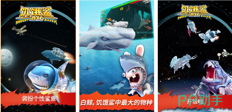 饥饿鲨:进化就是款背景设定与海洋世界中的鱼吃鱼进化类型作品,你将化身体格庞大的鲨鱼在海底世界感受吃鱼进化的快乐,丰富的海洋生物形成了真实的海底生态环境,全3D的建模以及细腻的鲨鱼形象设计给人带来舒适的视觉效果,还有许多个性化的鲨鱼装扮可以搭配并提升鲨鱼的属性。