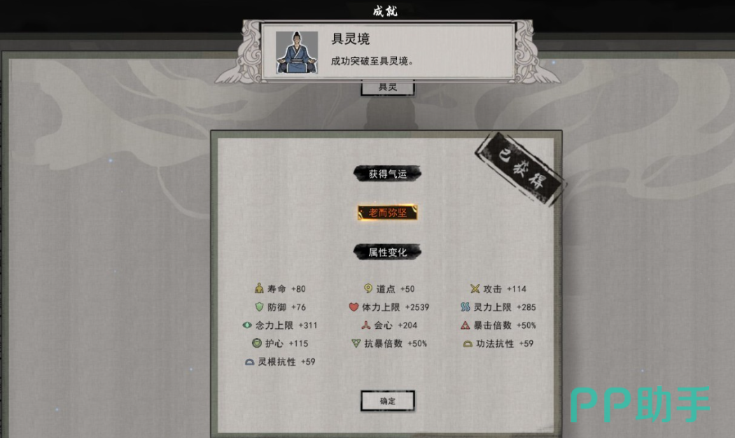 当准备好上文中的这些材料之后,此时你就可以顺利突破了,每一次突破境界之后,各项属性都会得到极大的提升,突破具灵期也是不例外的,除此之外每一次突破时还有一定的概率能够触发逆天改命,玩家们可以看一下自己在触发的几个属性中有没有比较适用的,如果有的话也可以留下。