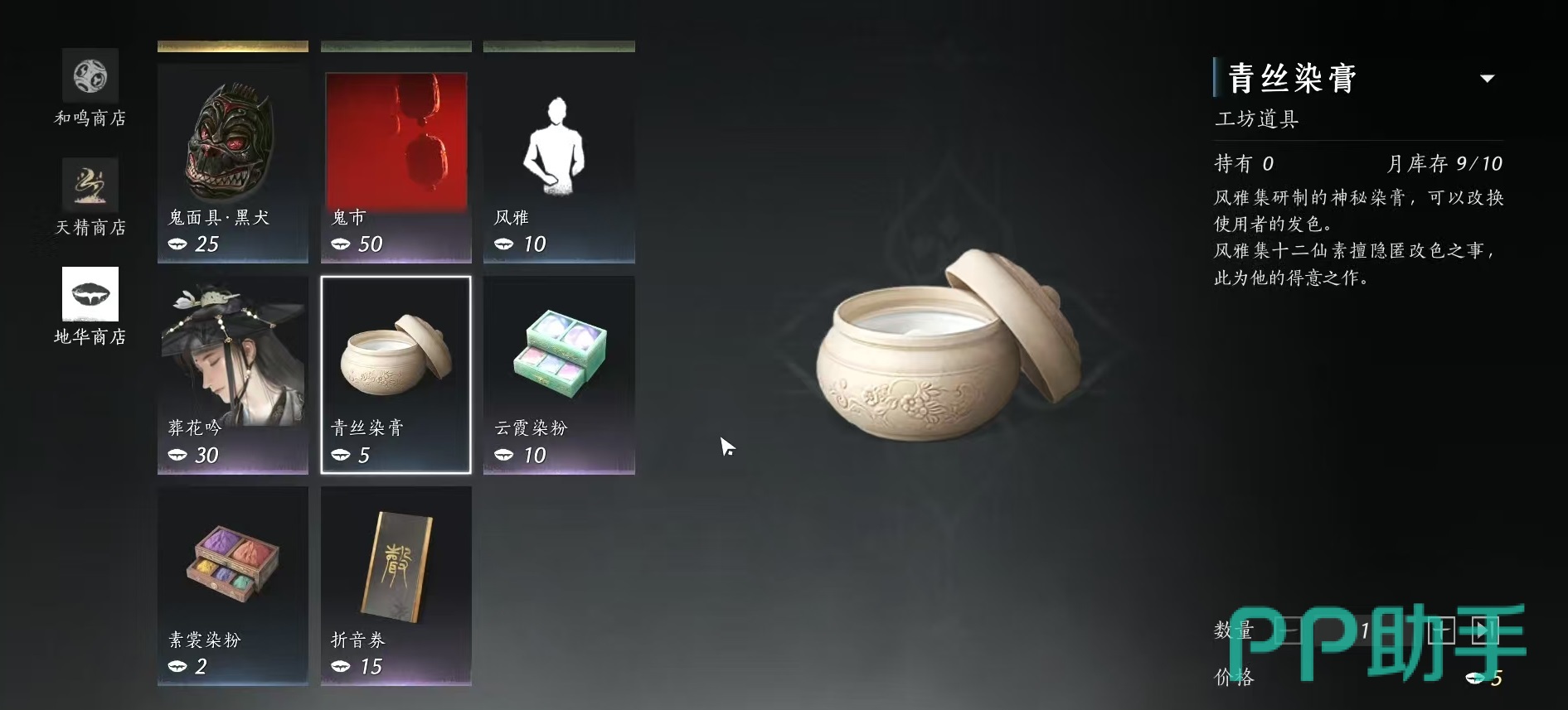 要进行染色,主要的道具有两种,分别是青丝染膏和凝华染膏,这两种道具的获取方式有所不同。其中青丝染膏主要是在地华商店,江湖百珍商店和赵飞烟私库购买到,凝华染膏则是在和鸣商店中能够购买。如果大家感觉自己精心设计出来的染色方案比较满意,那么也可以通过染色界面右下方的一个上传万相集按钮,将自己搭配出来的色彩分享给其他玩家,这对于有分享欲望的玩家来说,也是一项很重要的功能。