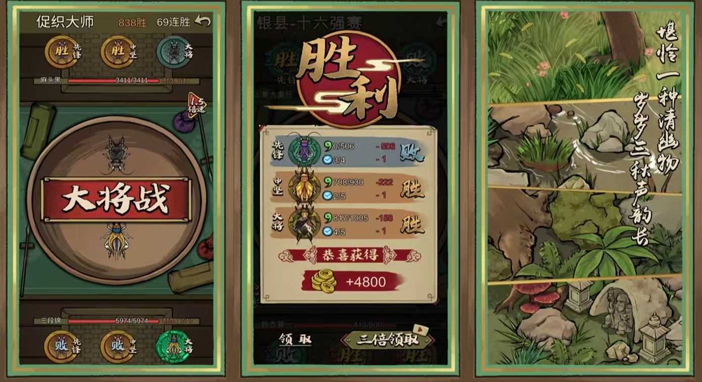《蛐蛐也疯狂》游戏里面有一个绿色的森林场景,角色是昆虫类蛐蛐,被分为了各种不同的品种,玩家需要自己去野外里面抓捕,通过喂养和训练来提升蛐蛐的等级。在游戏中担当一个指挥官的身份,采用蛐蛐来参加众多的比赛战胜其他的玩家,每一个关卡里会面对不同的蛐蛐品种,每一位蛐蛐有着不同的战斗力,每次作战时会在一圆盘上进行对抗。