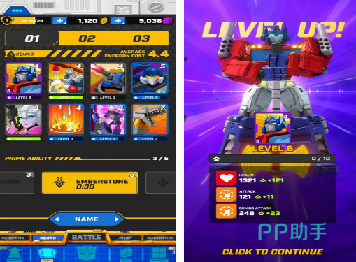 玩家置身于这款拥有着变形金刚的游戏以后,可享受pvp战略性游戏玩法,更能通过逐渐变形金刚队伍的方式,来发展自己的实力。有大家熟悉的很多人物以及超多的武器,通过自由支配的方式,对变形金刚收集以及升级,再加上利用个人战略等方式,也能让每个玩家享受真实机甲战术竞技场所带来的紧张刺激感。只要发挥自己的实力,基本上就能取胜。