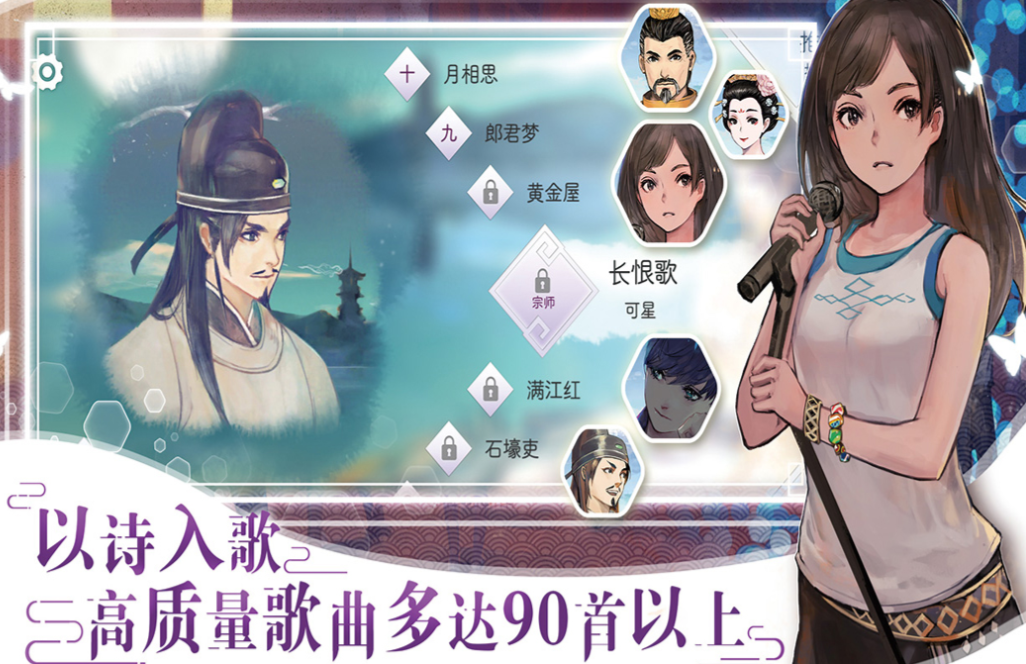 这是一个将古代的诗词歌赋与音乐节奏玩法进行融合的精品神作,以诗入歌的特殊创作理念无疑让本作显得与众不同,你要做的就是跟随游戏内的音乐节奏快速点击出现的诗词进行闯关,数十首悦耳动听的古诗词歌曲让本作的内容更显丰富,优秀舒适的点触式操作体验也是音乐类游戏的魅力所在。