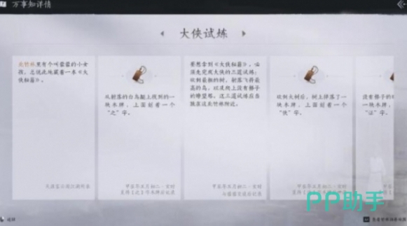 此任务要求玩家利用自己的轻功技能或巧妙地利用周围环境,登上一座没有梯子可以直接到达的瞭望塔。不仅是对玩家攀爬技巧的检验,也是对游戏探索能力的一次挑战,北竹林旧居附近的高地便是这项试炼的发生地,成功登顶瞭望塔后,玩家将获得“证”字小木牌,标志着个人武道修行进入了新的阶段。