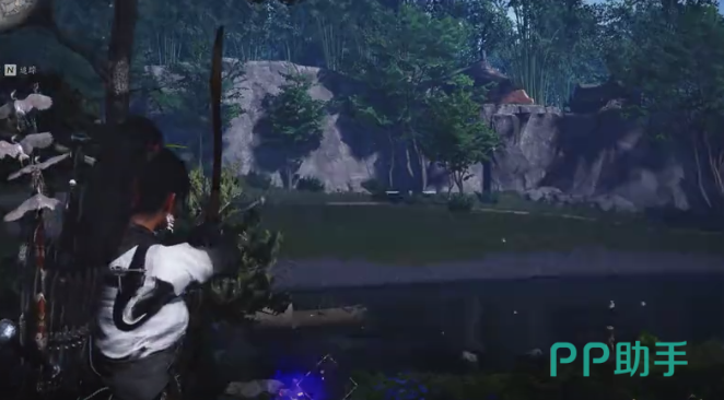 继续往前方走,在树那边还可以直接通过听声音去辨别位置,可以直接瞄准树上的两个目标,在瞄准目标之后同样也可以收集第三个蹊跷。接着还可以来到右手边的门口,然后完成对话,这就完成了第1个猫戏任务。当然这并不是唯一的一个任务,玩家还需要继续的朝着左手边走,这里会有一个院墙,靠着院墙即可。