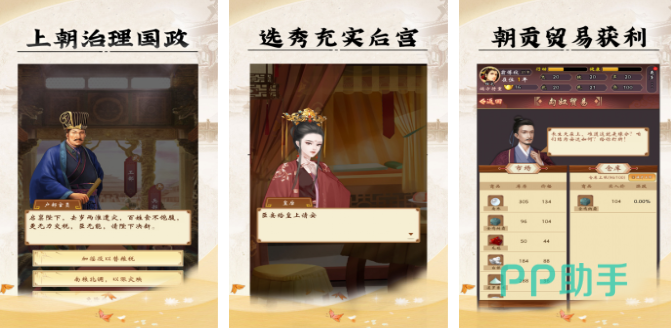 在这款休闲手游里都好我们就可以成为皇帝,去感受当皇帝的各种酸甜苦辣来!比如说国家遇到各种事情和困难时,需要我们亲自去治理,大臣会将难题抛给我们,玩家需要思考之后来决定如何解决,你的每一个选项,都会影响着游戏进程的发展方向和!同时也可以在选秀大赛中,选择那些特别好看的古风美女,将他们纳入你的后宫,让自己快乐快乐!游戏还有征战玩法,你可以去远征西域,开疆拓土打天下哦!