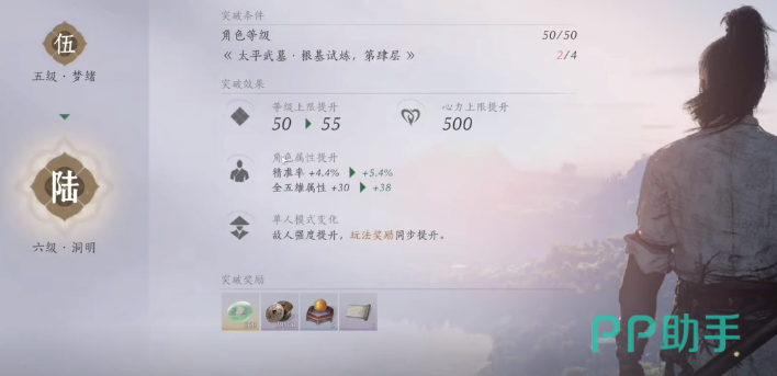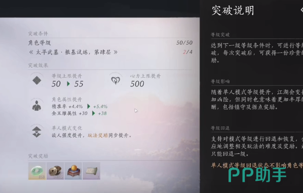 在成功完成突破之后,角色等级上限也会提升,另外还会提升角色的属性,其中包括五维属性,还有精准率。在单人模式中也会相应的增加敌人的等级强度,另外玩法奖励也会迅速的提升,基本上每一个阶段在突破之后都能拥有额外的固定奖励。