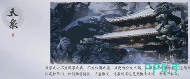 天泉门:要想加入到其中,就需要保证侠义值超过60,并且不是一个贪图钱财之人。在加入门派之后就需要经常性的行侠仗义,如果有满满正义感的玩家就可以选择。