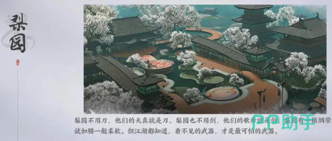 梨园:这一个门派是非常有趣的,主要的武器就是绸带,要求加入的人不可以随意的谈恋爱。