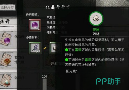 草药类材料是炼丹的核心,种类繁多且用途各异。像霓裳草和茯神这样常见的草药,多用于炼制基础丹药如筑基丹、化晶丹等,可以通过击杀普通怪物、探索陨幽谷或特定区域挖掘获得。而更为珍贵的草药如赤血龙葵、天山雪莲,则需要玩家深入险地采集或击败特定怪物方能获取。这类材料往往与高级丹药的炼制密切相关,例如天山雪莲可用于炼制结婴丹、玄元丹等高级丹药,是修士突破境界的必备资源。