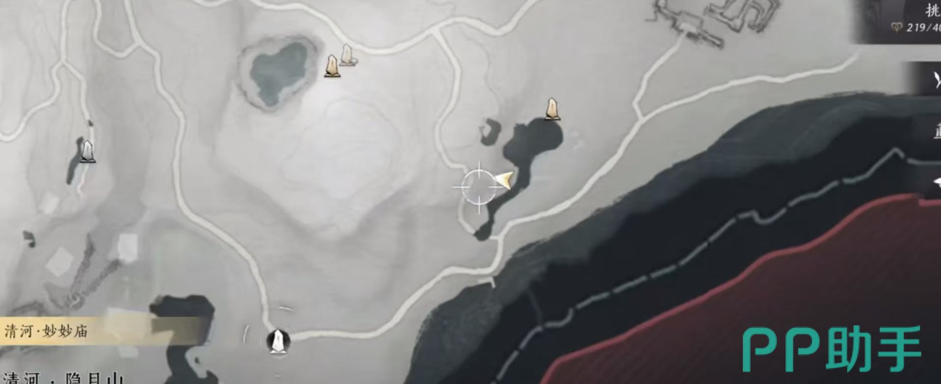 这些前置条件做完之后玩家就可以前往偷师地点偷师了。按M键打开地图之后我们找到清河这张地图,然后来到地图丹涯下面的一个据点。这里大家可以提前解锁地图上的据点,这样就方便传送。传送到据点之后直接往上走,我们会找到一个山洞,这里就是开启偷师地点的地方。
