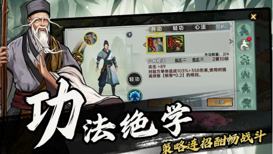 基于武侠的题材进行打造,还呈现出了单机放置rpg手游,刚开始玩家只是初入江湖的新角色而已,面对所有的事情都是非常陌生的,需要历经各种千辛万苦,还要挑战各种帮派。在不断探索以及学习武林秘诀的过程当中,才能成为真正的江湖英雄。这里有数百位江湖英雄,将会和玩家并肩作战,并在偌大的江湖当中拥有更高的成就。