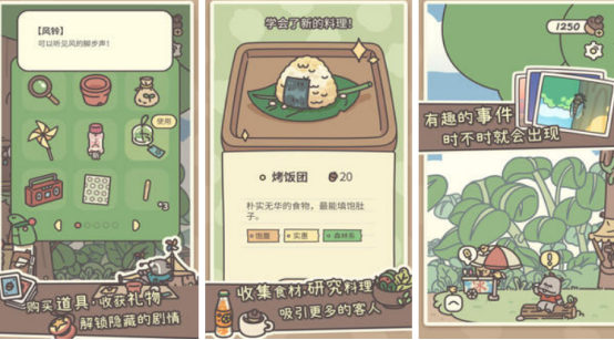 休闲卡通的画面,在这里您将要扮演的是非常可爱的小松鼠,原本和爷爷相依为命,但是在爷爷去世之后,为你留下了橡子屋小店,玩家需要用心经营,通过到处收集食材以及解锁更高等级的菜谱,为更多的顾客制作出美味的食物。在经营店面的过程中,也会遇到很多可爱的人物以及有趣的事情,也可通过放置挂机的方式来提升等级,并帮助自己完成相应的任务要求。