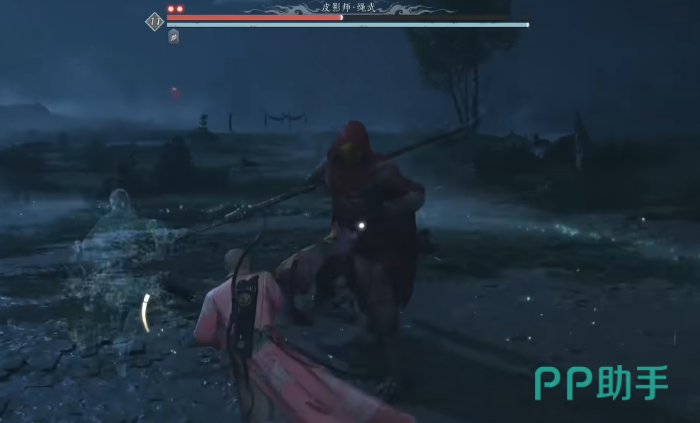 皮影师的第一个技能是跳起后砸地板,这个技能还是容易躲避,玩家可以在其落地时使用卸势或通过闪避轻松规避伤害。第二个技能是高跳长枪发光,这招无法卸势,需在Boss跳跃时注意观察长枪,在闪光的瞬间通过闪避来规避伤害。第三个技能是一段连招,玩家在Boss起手时要连续按下卸势键,直到boss停止攻击,一般这么操作就能清空boss的韧性条,进而触发处决进入第二阶段。
