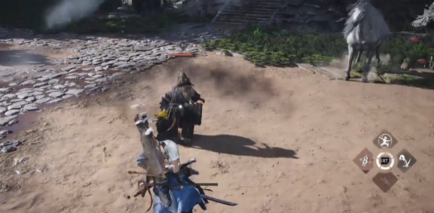 进入第二阶段后,Boss技能与第一阶段类似,但攻击频率显著提高,且更加难以预测。开场时马会再次跳舞,玩家需提前跳起,直至舞蹈结束后再落地。随后Boss会突然远离玩家并发起冲锋,可能是单纯的冲锋,也可能接派生技能(比如侧身撞击或转身后踢),因此不建议卸势,直接闪避更为稳妥。如果是是单纯冲锋,Boss撞击障碍物后会倒地,进入长时间僵直状态,这是输出的好机会。在熟悉上述技能后,只要耐心点,就可以通关。