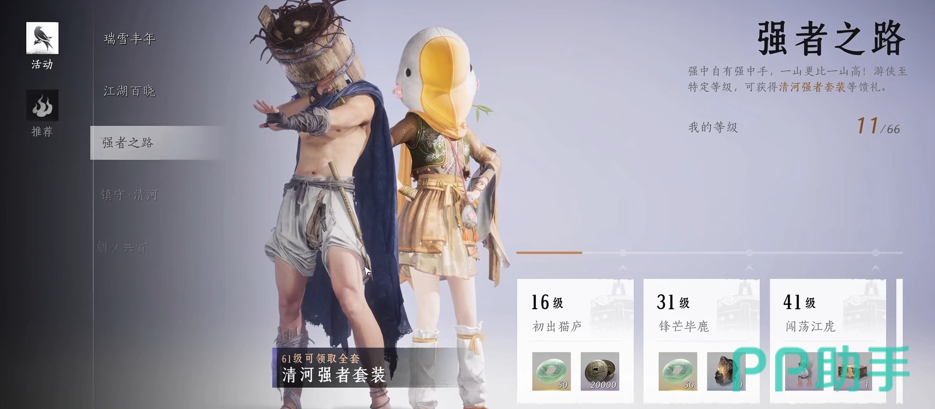 第二套介绍的是:清河强者套装,获取方式是完成强者之路,达到61级后就能得到。