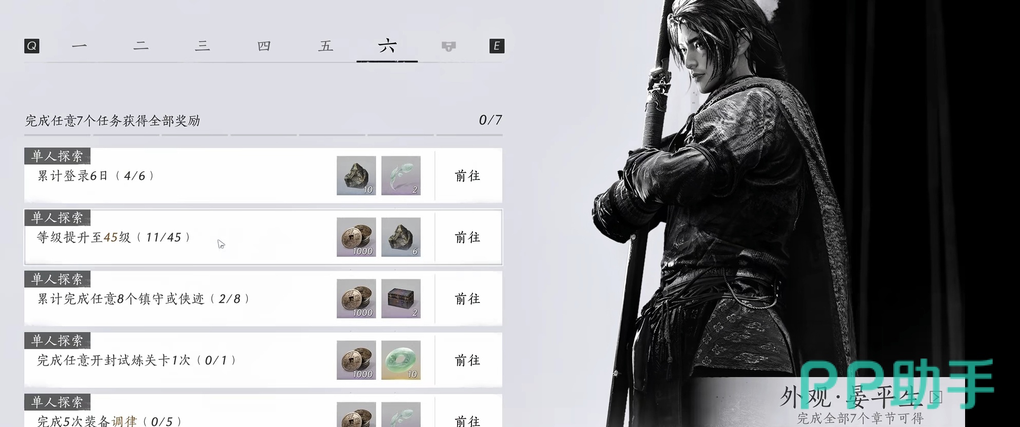 第一套介绍的是:晏平生,这套服装只要完成侠客行中的七声江晏的任意七个任务,再加上签到七天就能拿到这一服装。