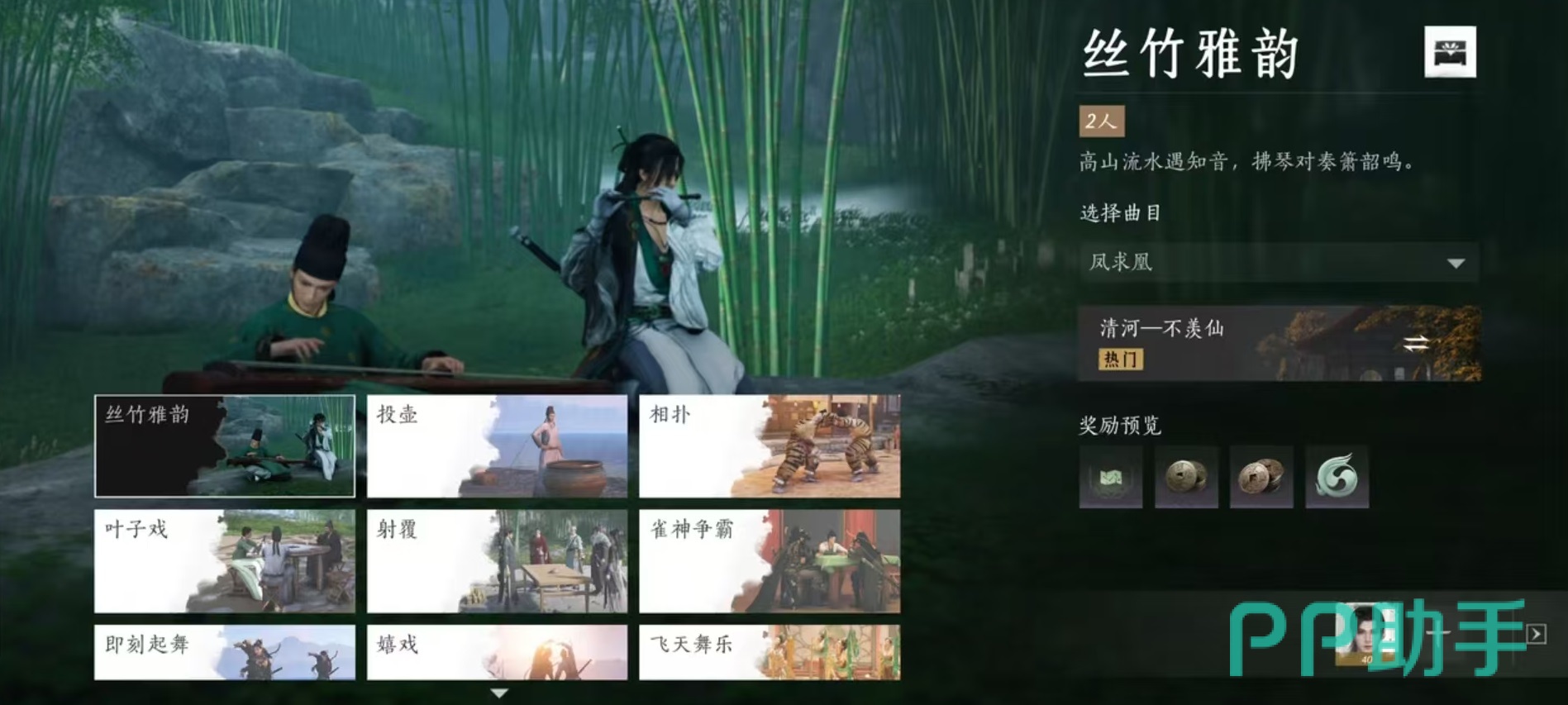 完成该活动之后还可以解锁丝竹雅韵玩法,打开闲趣之后,就可以看到有丝竹雅韵,这是需要两人在一起进行匹配的多人玩法。匹配成功就可以由二人来进行联合演奏,然后根据最后的评分来给出相应的奖励。包括最高连击、完美、良好、普通、失误等都会记录到分数之内。所以在闲暇时候来到丝竹雅韵和好友一起进行一起演奏,也是非常惬意的玩法。