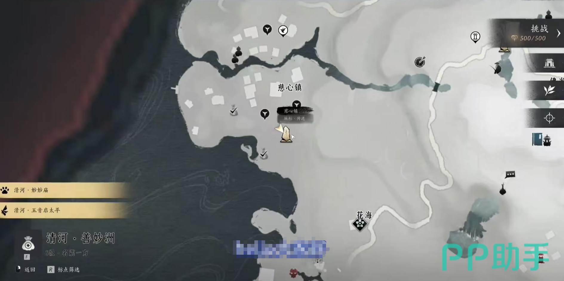 被划去的名字属于支线任务,起始地点是在清河,任务地点在善妙洲慈心镇之二那里,所以大家先要在地图上找到这个地方并前往。由于镇南去向不美仙的路口那里有个神秘人出现,并且他看起来非常焦虑,所以快去看看他身上有什么故事吧。