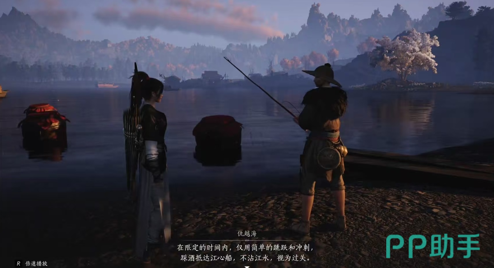 第3个是暮云何物,来到不羡仙南面瓷窑附近,找到渔翁,需要沿着酒坛跳到船上去,用二段跳就可以,距离远的需要使用到三段跳加冲刺。来到船上后拿到秘籍学会奇术飒沓流星,这时就可以使用大轻功了。不过大轻功还是存在限制,渔翁会将玩家拉下来,然后需要获得暮云佩才能使用轻功,通过继续探索地图清河探索等级到四级后就能得到暮云佩了。第4个是河山如故,到达白草野南部的遗址处,进城之后利用爆炸火药方式消费敌人,救下烈不灭,将4个火炬点燃,这时看到一条通往地下的通路,来到地下之后触摸将军雕像,将墙壁上的字谜机关解开之后完成任务,获得奇术凌虚一指。