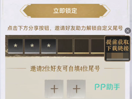 将这个活动分享给好友的话,还可以自己去填写四位尾号,确定好之后就可以锁定了,锁定ID后无法更改,这个靓号会保存到燕云移动端公测,也就是说能带到移动端。