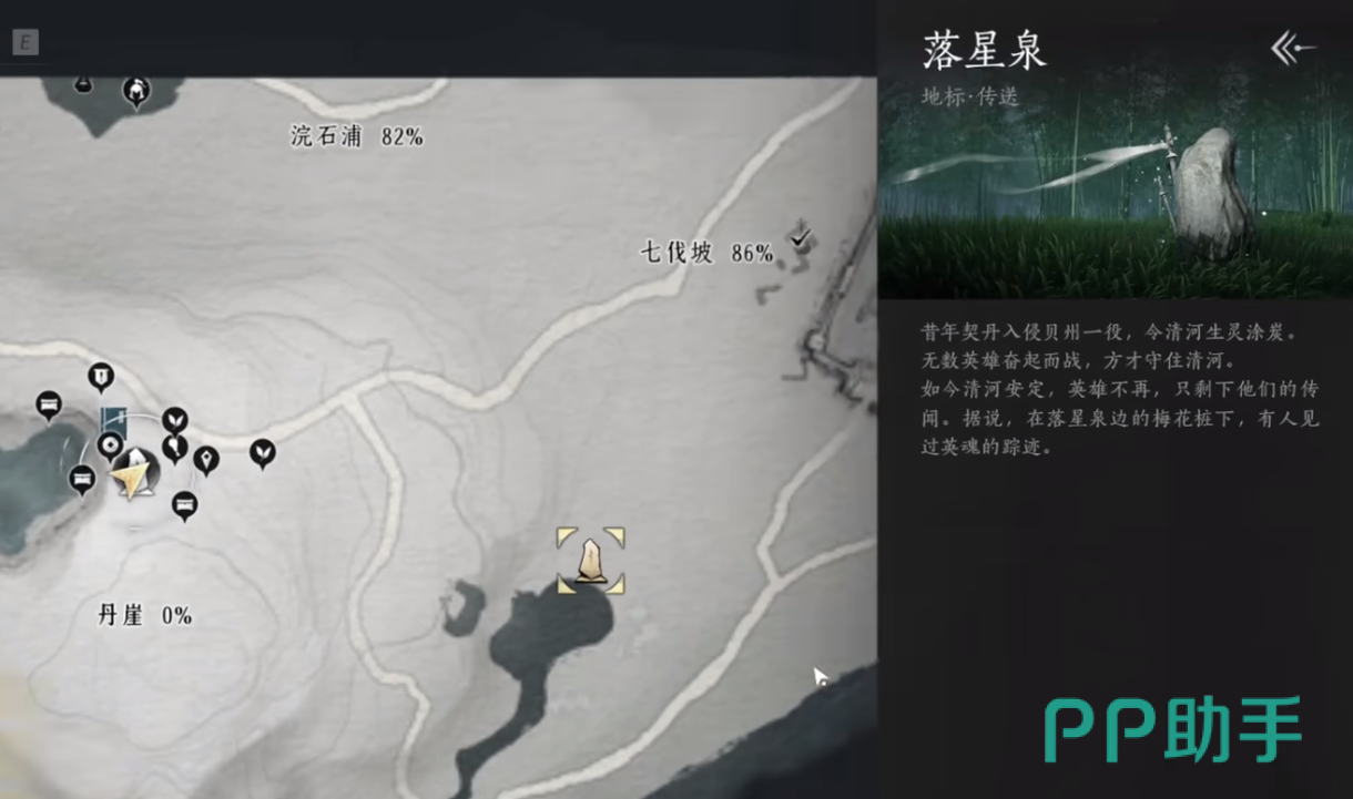 首先是界碑,必须至少开2个,湖边的一个,以及湖的东边落星泉,记录之后就很方便探索传送。
