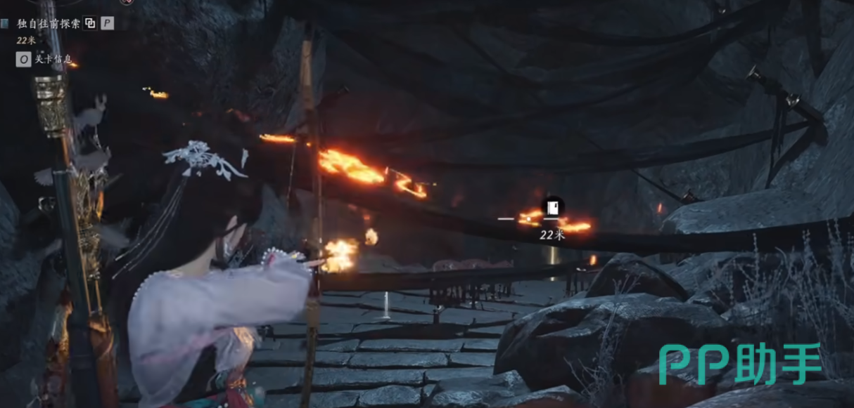 成功解密机关就能打开地下通道,沿着路途深入探索,整个过程都比较简单。需要注意的是洞穴里的红色布条触碰时会扣血量,如果你是直闯的话,中途需要停留等恢复,不然血量是不够的。当然玩家们也可选择切弓箭等远程武器,点燃布条开路。