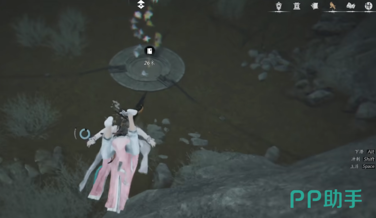 首先是探索方面,虽然这个丹崖地区并不是很广阔,但它包括的探索内容不少,而且还有任务卷4以及多达14个宝箱。当玩家完成地面上的探索之后,可以来到如图的湖上,将湖水放干之后,就可以与前往湖下的地下通道。