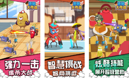 奇葩的香肠英雄造型和搞笑轻快的剧情主线让游戏在同类中脱颖而出,游戏以多人射击为核心主题,海量个性香肠皮肤和精美枪支皮肤随你解锁。你将控制喜欢的香肠英雄开始射击冒险,游戏所有地图都源自生活场景,包括厨房、阳台、茶几等等,为了拯救其他食物你将跟好友一起组成香肠小队疯狂出击。