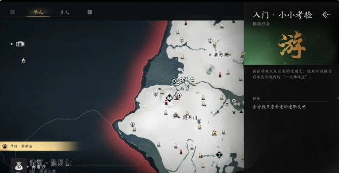 先是任务的触发,需要将自己传送至隐月山左上角的丰禾村,在这里找到NPC店小二也就是三钱儿,与他展开交流,直接选择“花钱购买消息”,就能触发任务了。选择不花钱的话,天泉长老是不会出现的,就不能继续任务了。接下来就是寻找天泉长老,根据任务的图标指引就能找到他。
