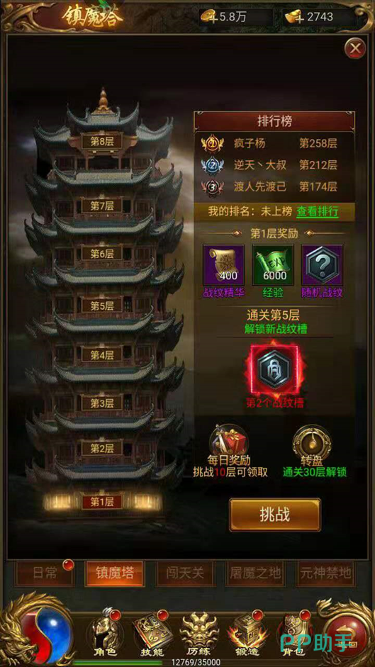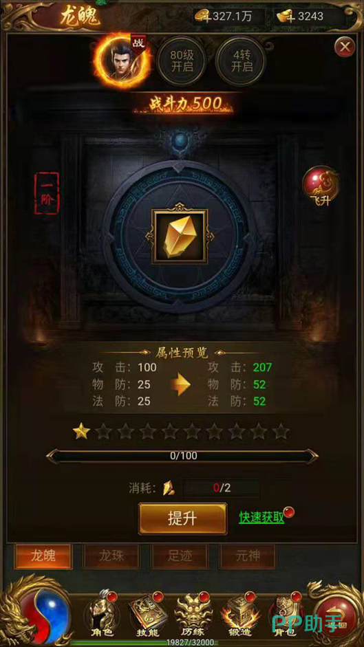 龙魄和龙珠是角色在前期的两大重要宝物,使用龙魄碎片后提升角色的攻击力、物防和法防,碎片可通过材料副本与商店获取;使用龙珠碎片则提升角色的暴击伤害与致命伤害。战纹相当于推塔手游中的符文,分为橙品、紫品、蓝品和绿品,随着镇魔塔的深入将陆续解锁后面的槽位。