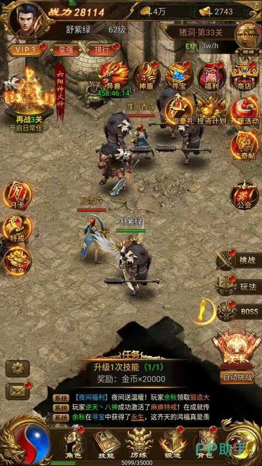 日常材料副本有四种:宝石、羽毛、经脉和龙魄。每个副本一天只能挑战一次,玩家们一定要把握好机会;日常石墓烧猪可以疯狂刷怪,而且经验获取没有上限,是快速升级的好途径。除了日常副本,还有镇妖塔、闯关塔等等,根本不用担心材料不够用,刷就完事了。
