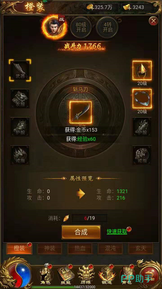 首先教玩家如何培养角色,角色培养分为神装合成、羽毛培养、宝物升级、战纹装备和技能历练。玩家收集到多余的橙装即可将其回收,回收后会返还神装碎片,神装碎片可用来合成其它橙装,神装也可通过消耗碎片进行二次进阶。